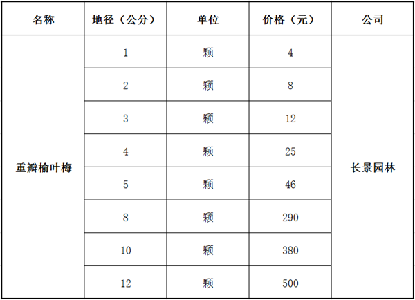 榆葉梅花多而密,非常好看,其花又分為單瓣和重瓣之分,因?yàn)閱伟?a href='http://m.sh-yuge.com.cn/huaguanmulei/396.html' target='_blank'>榆葉梅的觀賞性沒有重瓣榆葉梅的好,所以目前苗圃里種植的大部分都是重瓣榆葉梅,規(guī)格一般在2-12公分這樣。哪里有賣重瓣榆葉梅?沭陽長(zhǎng)景園林榆葉梅重瓣榆葉梅種植基地,常年大量出售重瓣榆葉梅,叢生榆葉梅,規(guī)格齊全,數(shù)量充足,價(jià)格也非常的便宜,具體價(jià)格可以參考下面的價(jià)格表,歡迎廣大客戶來電咨詢選購。