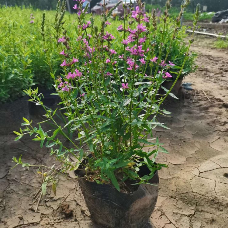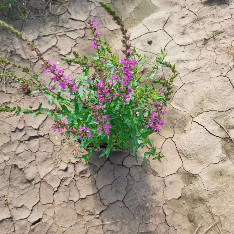 千屈菜又叫水枝柳、水柳、對葉蓮等,多年水生宿根草本植物,植株高約1米,直立生長,主桿上有許多分枝,葉子對生,披針形。葉子長4~6cm,寬1cm左右??偁罨ㄐ蹰L在最上面,長約30cm,花朵簇生。喜歡溫暖濕潤陽光充足的環(huán)境,在我國南方和北方地區(qū)都有野生的,生長在沼澤、湖畔、池塘等淺水地區(qū)。它耐寒性強,在山東、河南、北京等地均可自然越冬,霜降以后地面部分枯死,地下部分進入泥土休眠,在淺水的河邊和低洼潮濕的地方生長態(tài)勢最好,對土壤的要求不嚴。千屈菜的生命力極強,管理也可粗放,栽培的環(huán)境只要保證光照充足、通風(fēng)良好即可,在生長期要經(jīng)常打頂促使其矮化分蘗,長出豐滿茂密的株型。